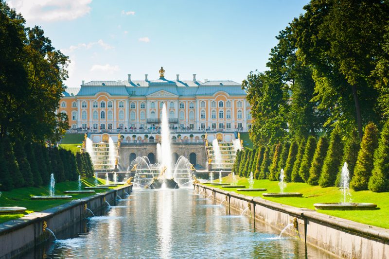 Прогулка по Финскому заливу (с купанием в жаркую погоду) — Петергоф — осмотр великолепных дворцов, фонтанов, посещение Большой оранжереи, прогулка по паркам — возвращение в Санкт-Петербург.